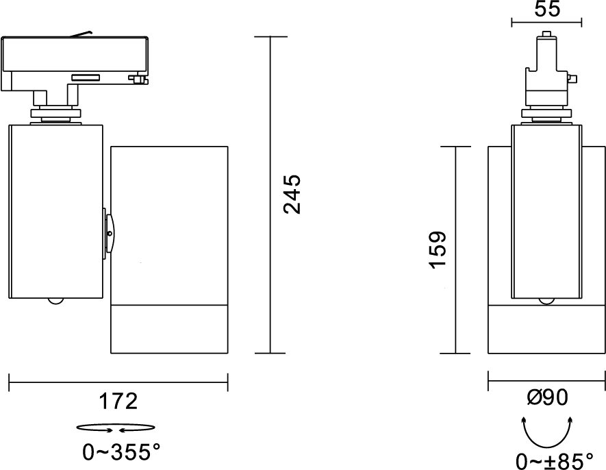 Horizontal rotation 0-355°, Vertical rotation ±85°